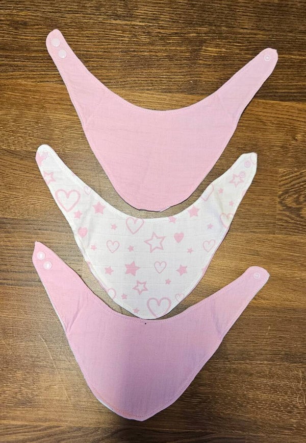 3er Set Dreiecktuch mit Herz- und Sternsujet, blau/pink.