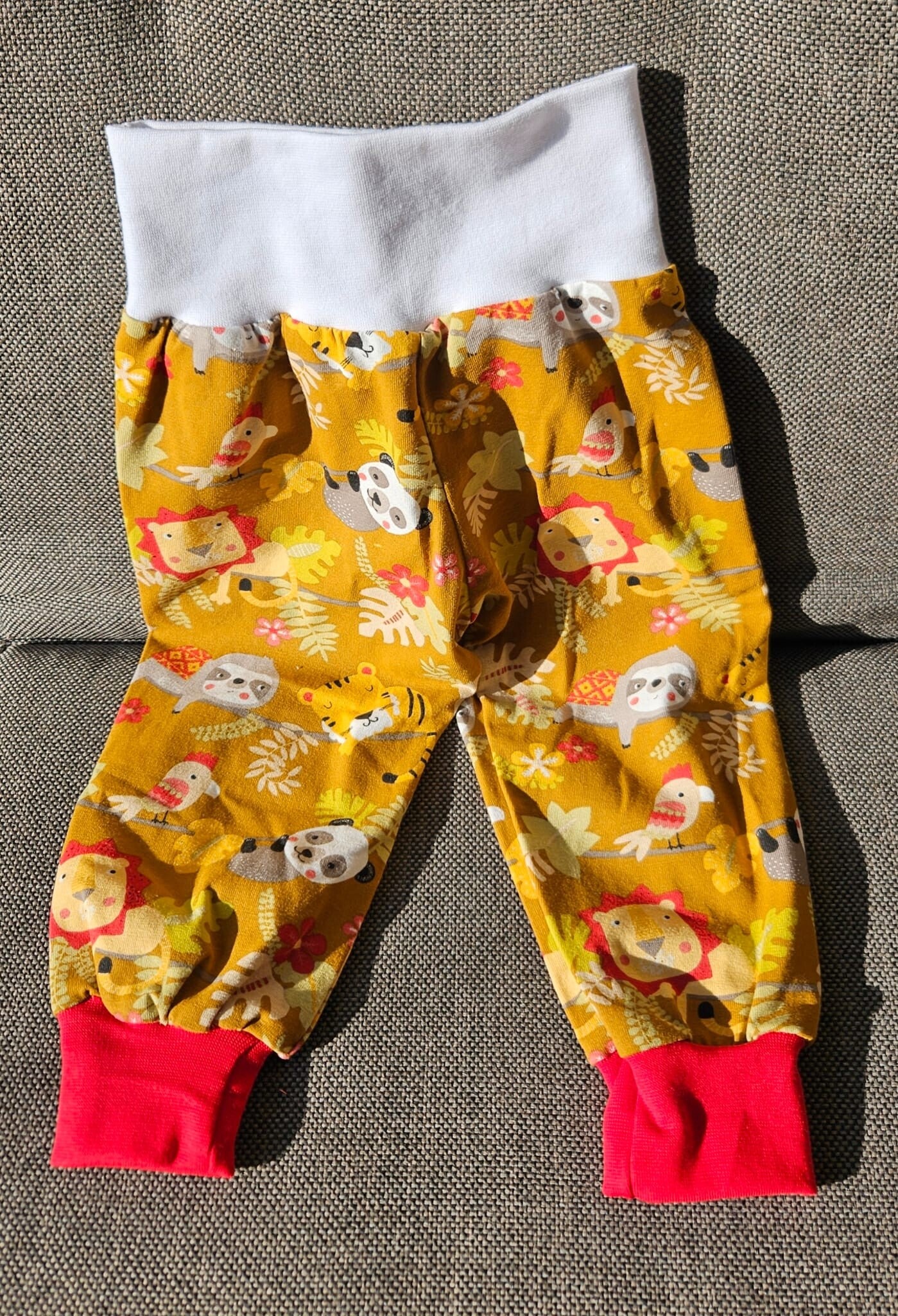 - Farbe: Zootiere auf braunem Grund mit weiss resp. roten Bündchen