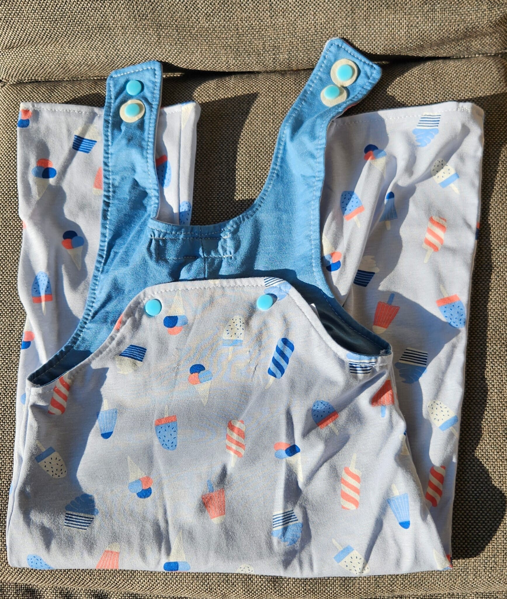 Farbe: Hellblau mit Glace-Sujet, ohne Bündchen